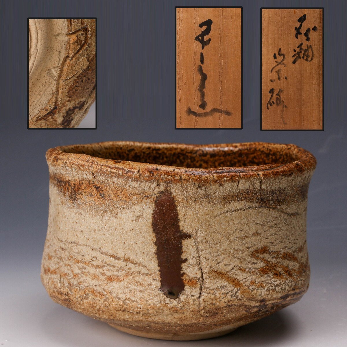 【佳香】河本五郎 灰釉茶碗 共箱 共布 栞 茶道具 本物保証