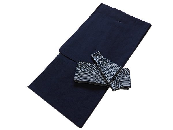 - 着物美人 男浴衣 ワンタッチ角帯 2点set 帯付き 綿麻 しじら織り メンズ浴衣 浴衣男性 男浴衣紺 浴衣 男性 男の子 L 170-177【紺】456912-2