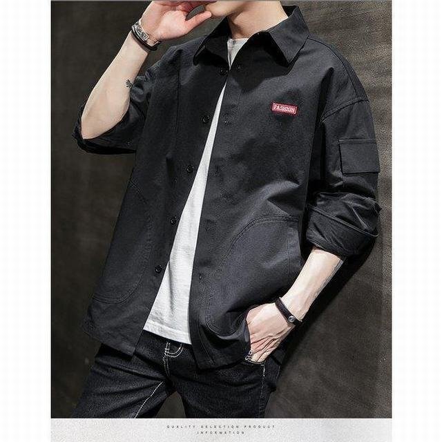 - シャツメンズ長袖ストレッチ無地ストライプ長袖シャツカジュアルシャツシャツ通勤大きいサイズ ブラック L