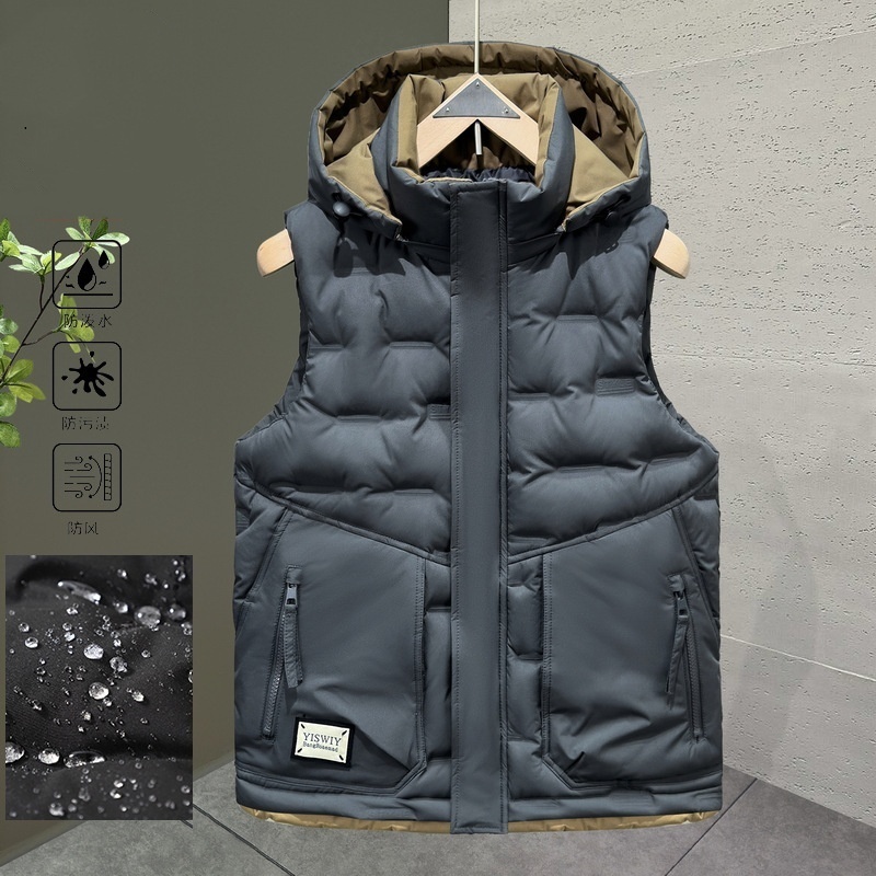 - 中綿ベスト ベスト 新品・メンズ 袖なしジャケット フード 防寒 キャンプ トップス カジュアルベスト【★】グレー系 2XL