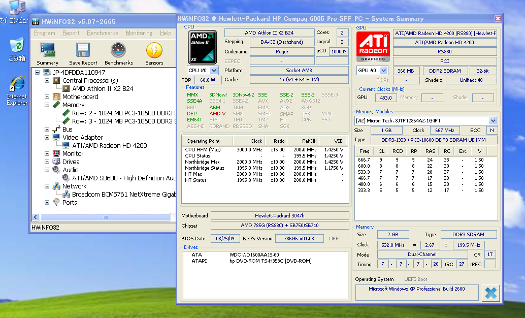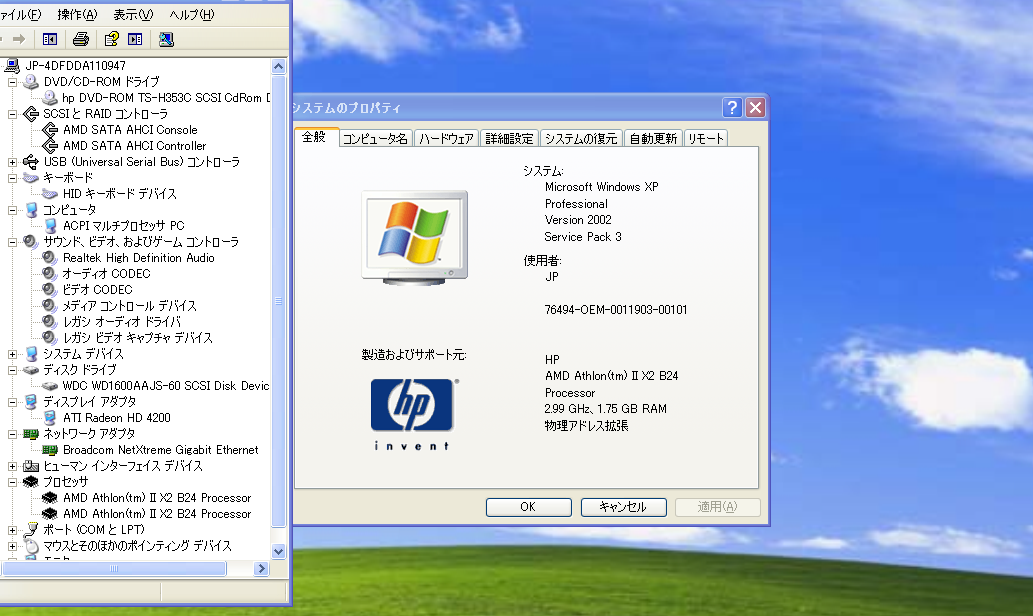 - Windows XP,シリアル,搭載 ★ HP Compaq 6005 Pro SFF/Athlon II X2 B24 3.0GHz/メモリ4GB,HDD160GB,RS-232C,DisplayPort,PS/2,便利ソフト