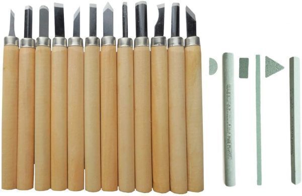 - 彫刻刀 12本+砥石3本セット 彫刻刀まとめて 木彫 版画 図工 美術 送料無料