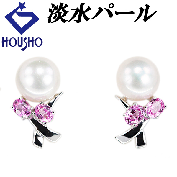- 淡水真珠 ピアス サファイア K14ホワイトゴールド 送料無料 中古 宝正 902964