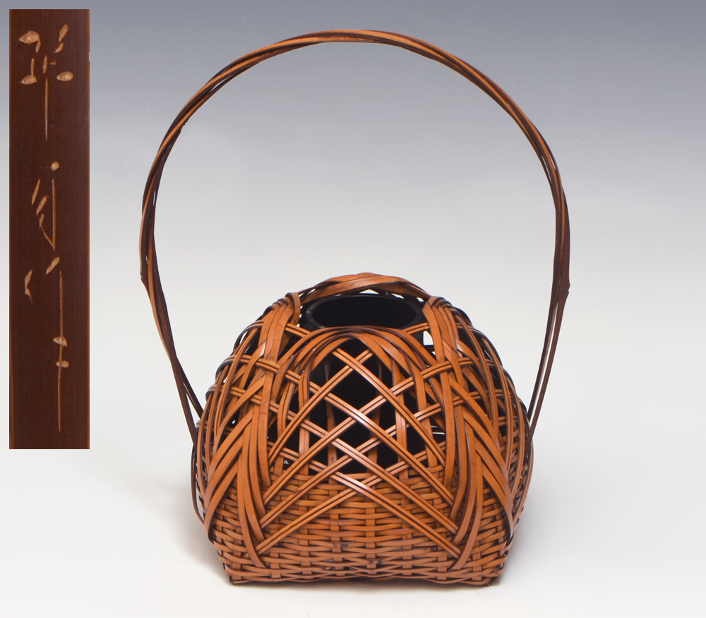 - 武関翠月(造)丸宗全 竹編花入 竹編籠花入 花器 花生 花籠 花篭 茶道具 華道具 木工芸 竹工芸 美品 u1336o