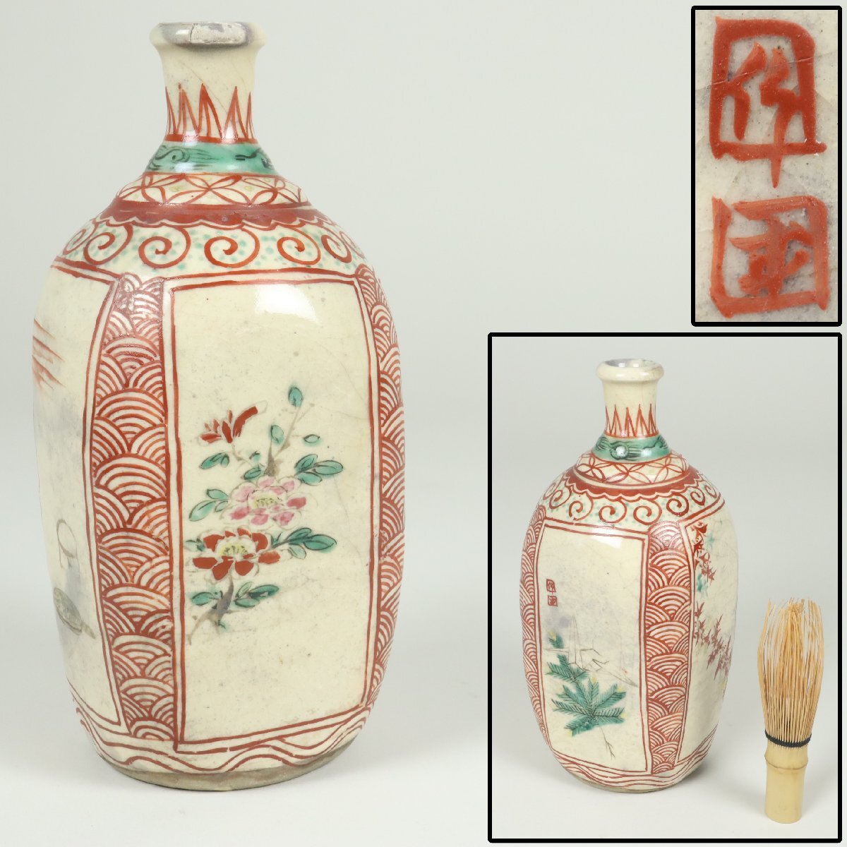 > 江戸後期 岩谷焼 保命酒徳利 鞆徳利 備後 鞆の浦 酒器 陶磁器 骨董品 美術品 1500scyK