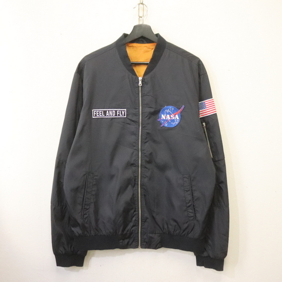 > y443 2000年代製 FEELANDFLY フライト ブルゾンジャケット■00s 表記2XLサイズ ネイビー フルジップ ワッペン アメカジ ストリート 古着