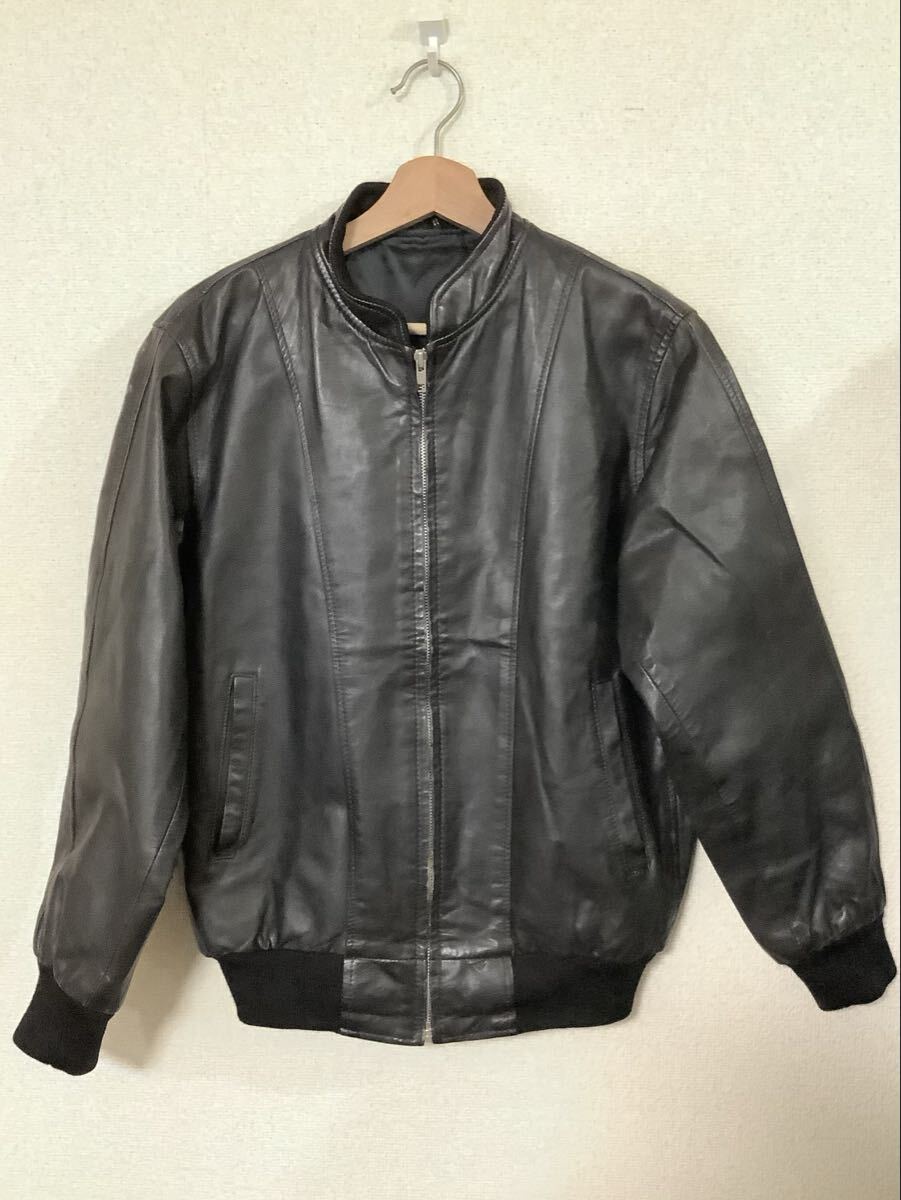 > シングルライダースジャケット レザージャケット ブラック レトロ 昭和 バイカー 紳士服 国産ビンテージ メンズ L