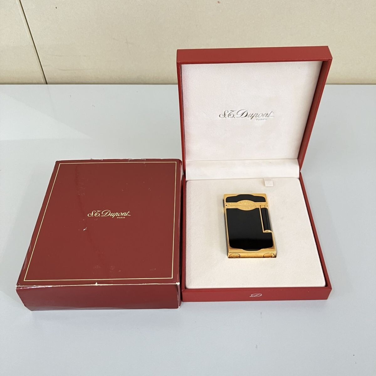 - K309-M29-1665 S.T. Dupont デュポン ライン2マデューロ 1F0FK00 ガスライター ネイビー×ゴールドカラー 喫煙具 箱付き ライター TE