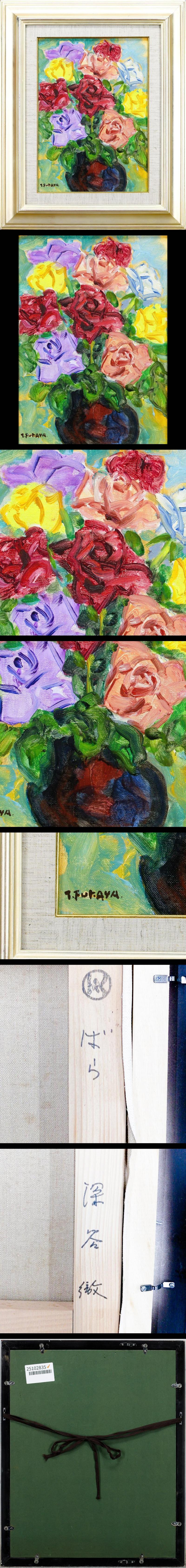 - 【真作】【WISH】深谷徹「ばら」油彩 4号 咲き誇る薔薇の彩り、美の調べ 〇日展評議員 創元会常任委員 日仏具象派結成 #25102835