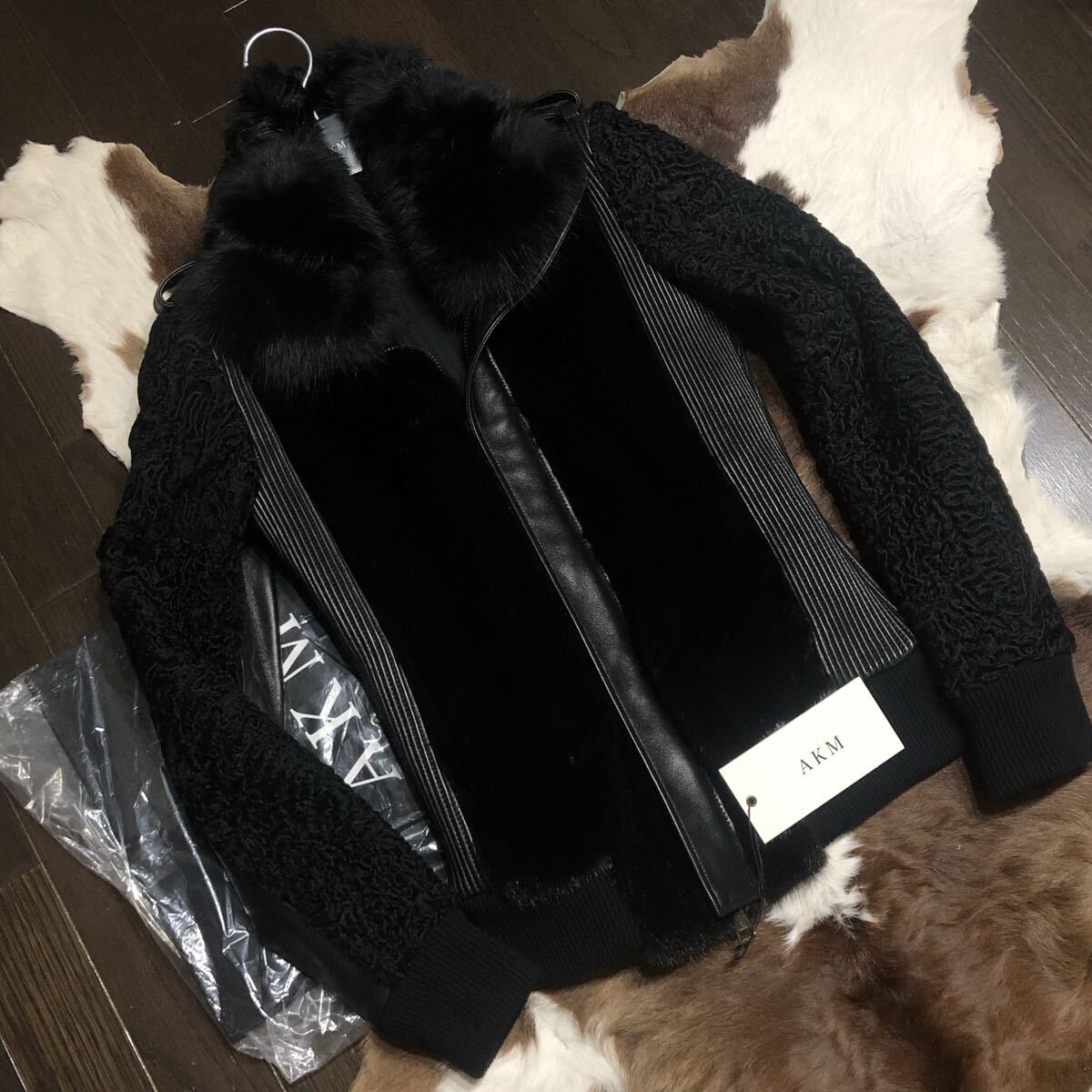 - 限定 AKM(エーケイエム)ミンク ×超希少毛皮 アストラカン ベビーラム フォックスファー ライダースジャケット 漆黒(サイズS)定価110万