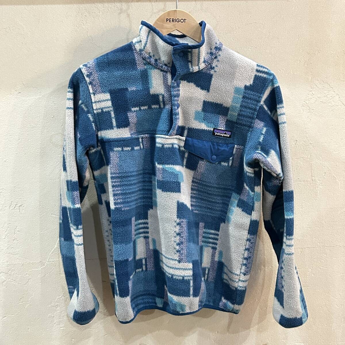 > 422 patagonia / パタゴニア 総柄 シンチラ スナップT フリース アウター レディース Sサイズ ブルー系 15年製 used