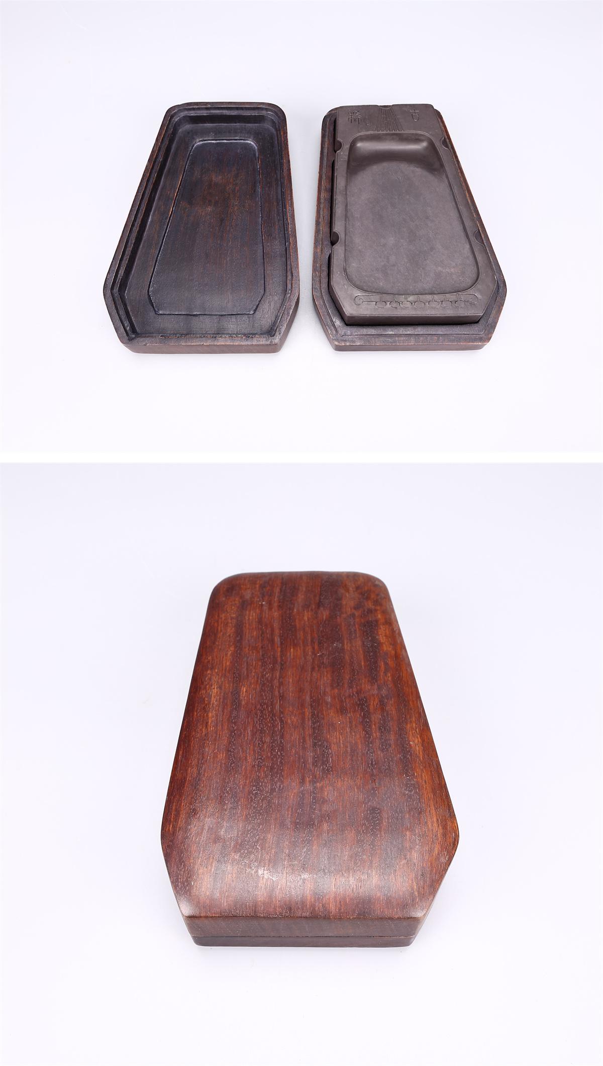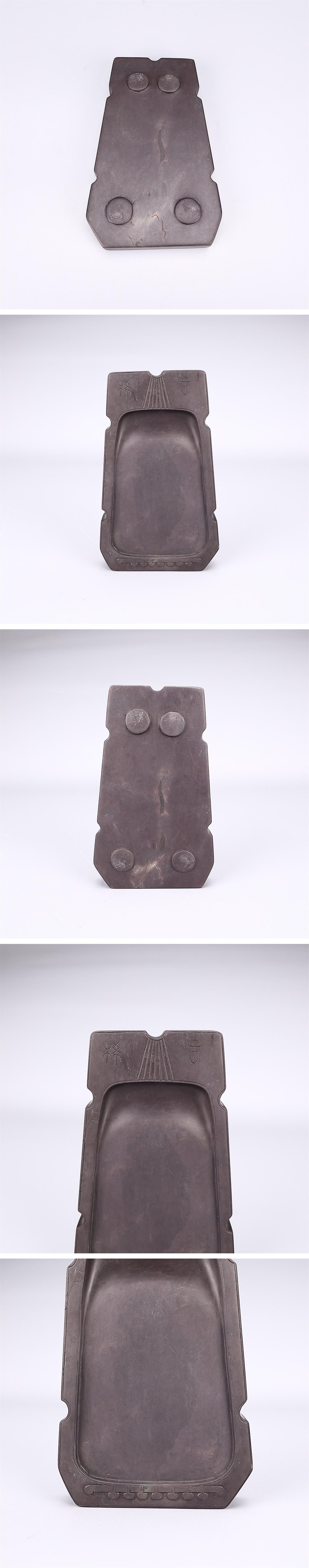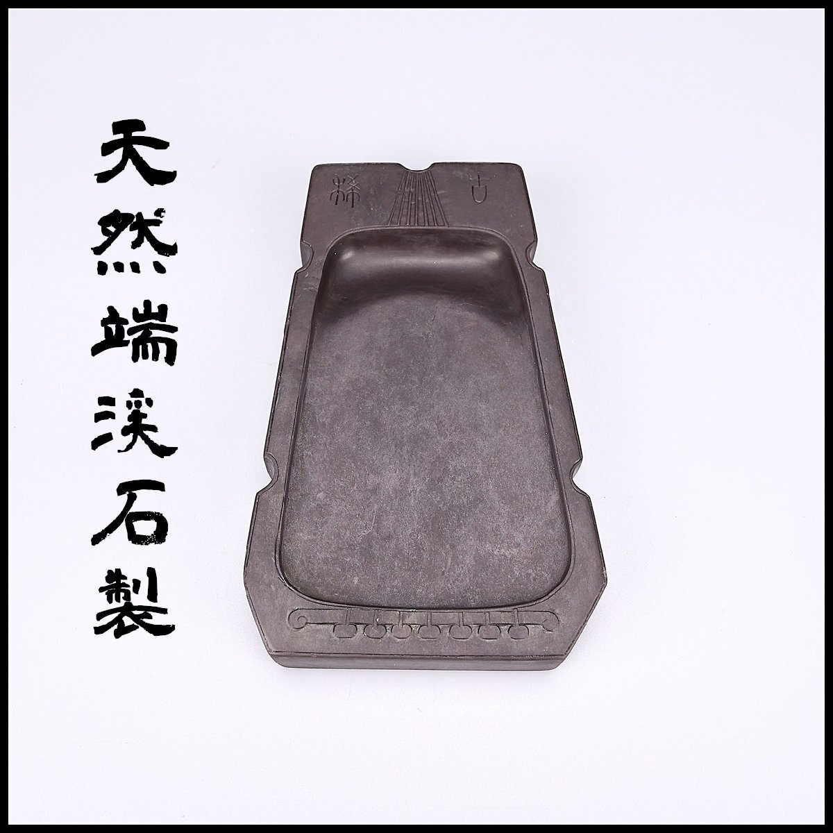 > 【吉】BB144 唐物 【天然端渓石製】 古琴形 書道具 端渓硯 幅15.2×9.5㎝ 重559g/木箱付 本物保証 美品I!