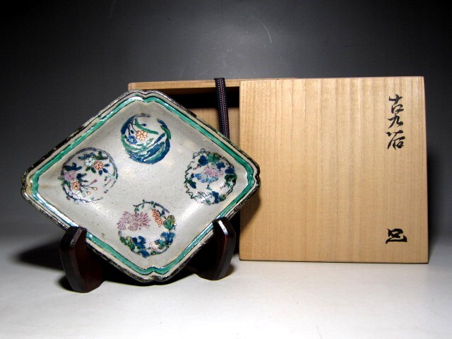 - 古九谷 皿 初代 黒田陶々庵の極めのある逸品 e991