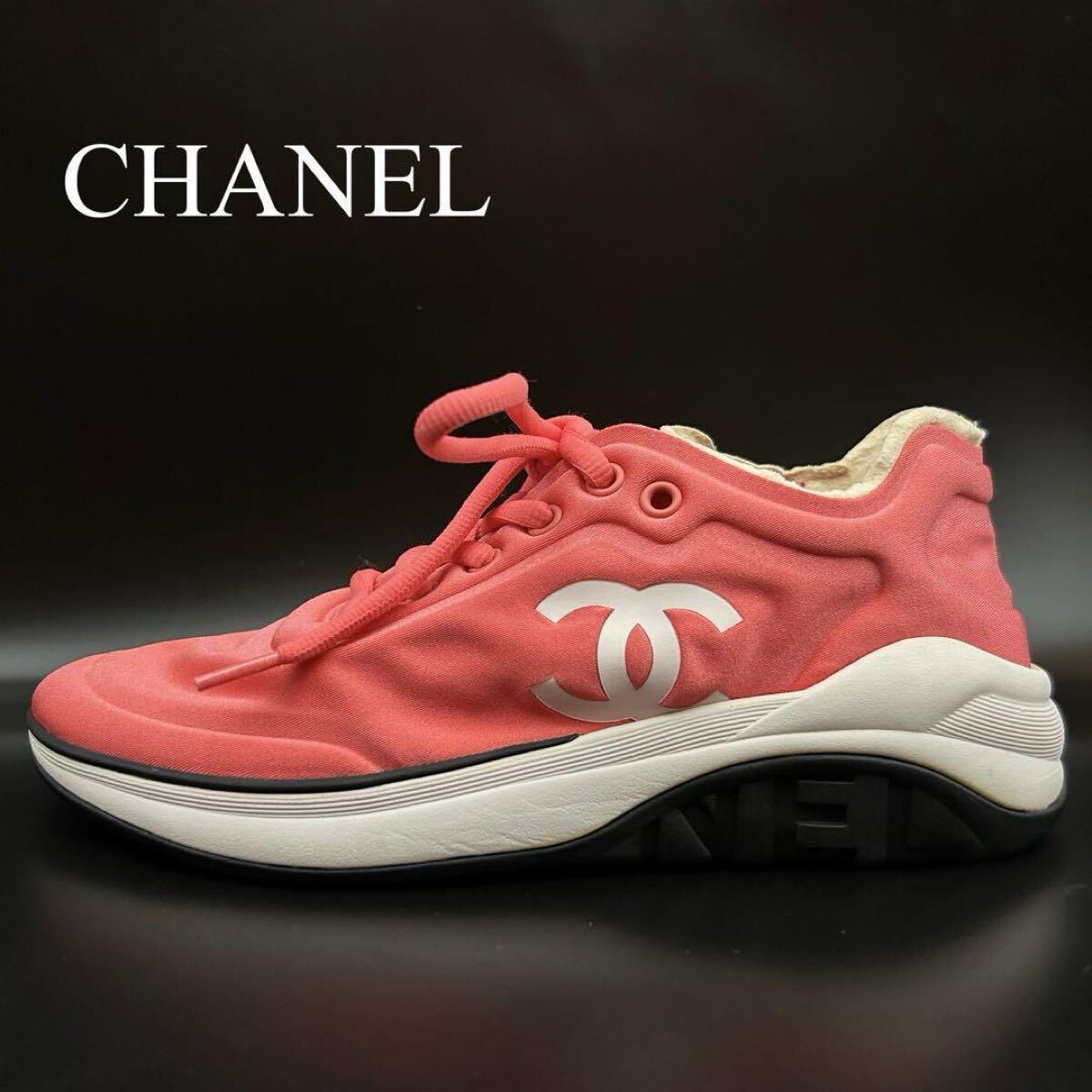 - 1円【極美品】CHANEL シャネル ローカットスニーカー ココマーク ロゴ ランニング レディース ファブリック ピンク 23cm相当