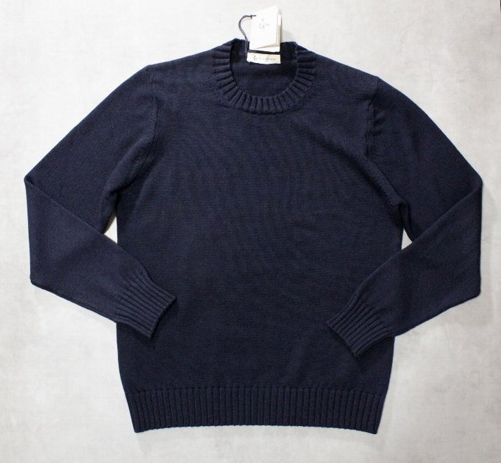 > PIACENZA★新品5万円程度 ピアチェンツァ 逸品定番ミドルゲージウールのクルーネックニット ネイビー 54