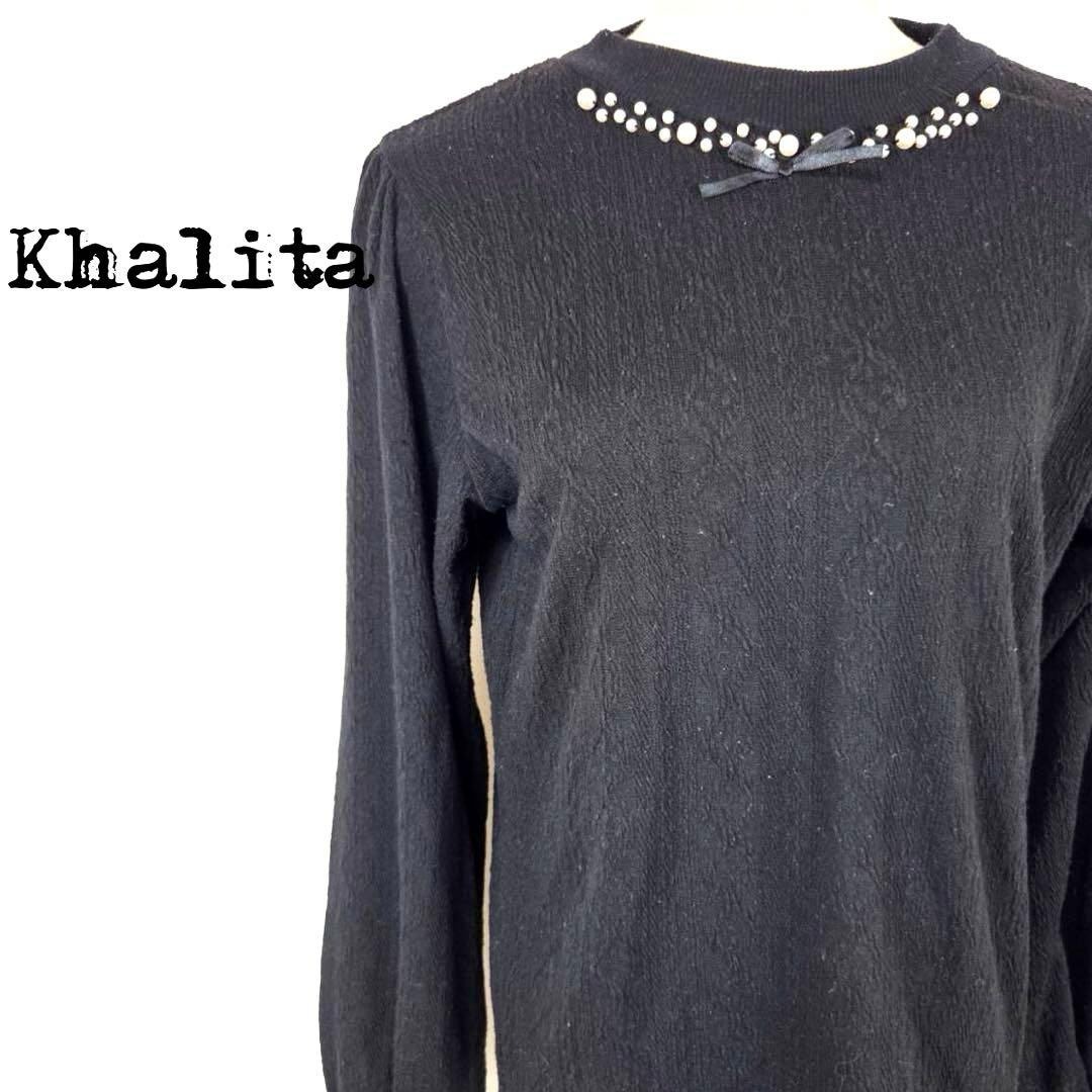 - Khalita カリタ パール装飾 リボン付き ニット セーター トップス