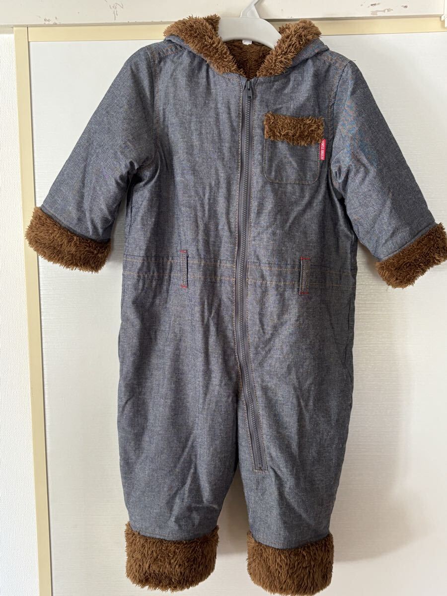 - 90サイズ デニム風 カバーオール ジャンプスーツ 防寒着