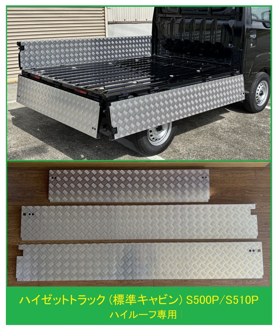 > ◎軽トラ ハイゼットトラック S510P (ハイルーフ専用) 荷台あおりインナーカバー 3枚SET アルミ縞板