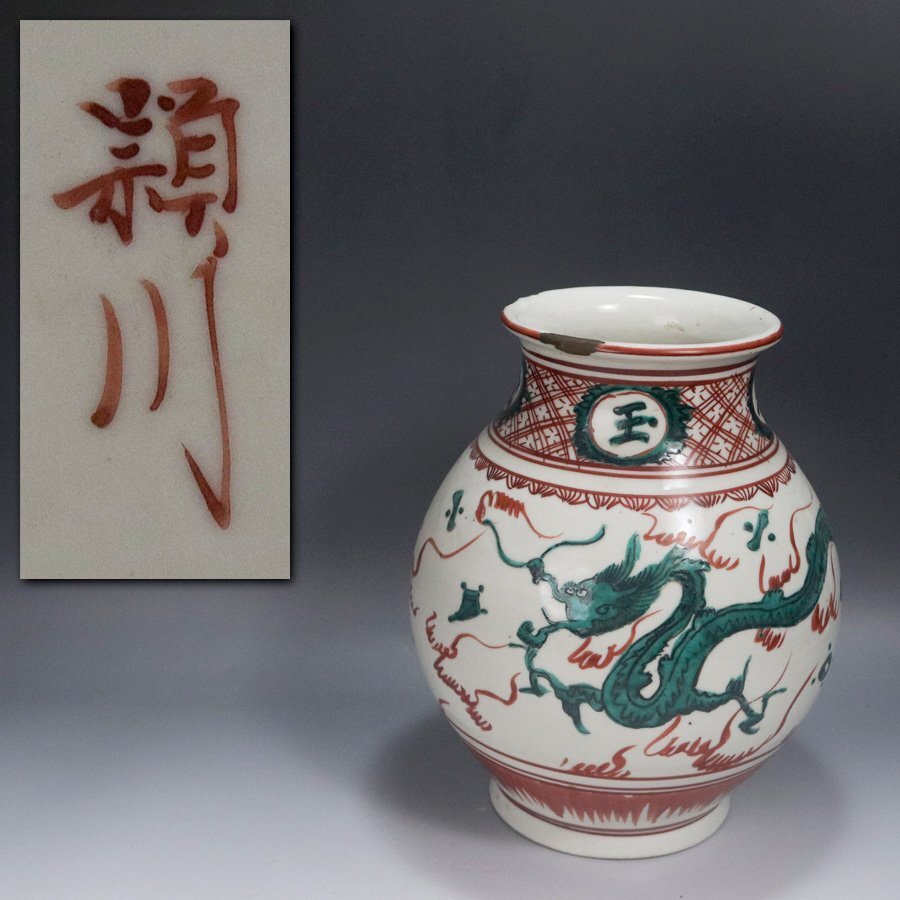 - 《源》【即決・送料無料】《江戸期》奥田頴川 造 呉須赤絵 雲龍紋 時代瓶・花生