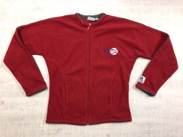 > アディダス adidas 野球 オールド レトロ スポーツ 古着 ノーカラー フリースジャケット レディース US 8号 赤
