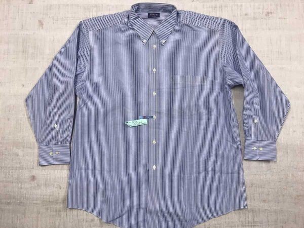 > アロー ARROW フォーマル クラシック トラッド マルチストライプ 長袖 ボタンダウン シャツ メンズ クリーニング済 形態安定加工 青