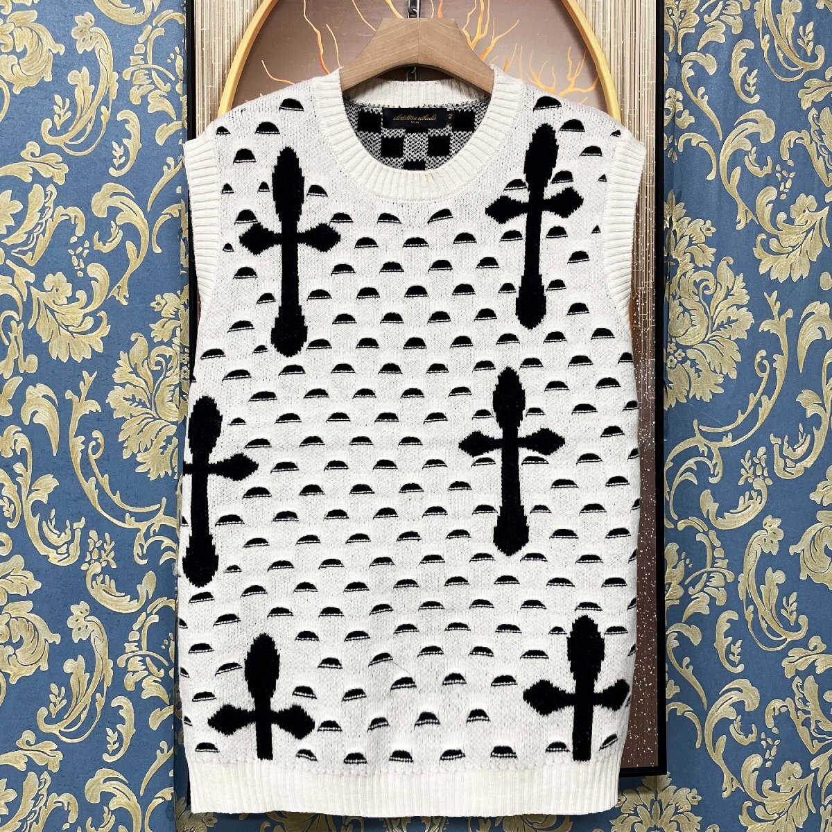 > 定価4万★christian milada・ミラノ発・ニットベスト★ウール混 柔らかい 快適 総柄 袖なし 着せ 重ね着 トップス カジュアル 秋 XL/50