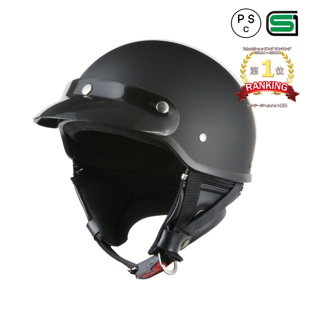 - バイクヘルメット ポリスヘルメット ハーフヘルメット 半帽ヘルメット アメリカン マットブラック フリーサイズ(57~60cm未満)