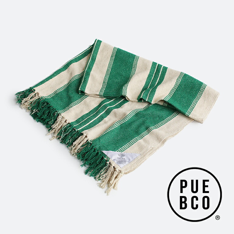 - ブランケット PUEBCO プエブコ おしゃれ ストライプ グリーン 大判 ひざ掛け TENNIS TWILL BLANKET テニスツイルブランケット