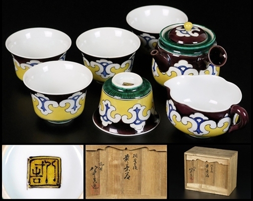 - 【 初代徳田八十吉 】秀逸作 桐模様煎茶器 共箱 保証