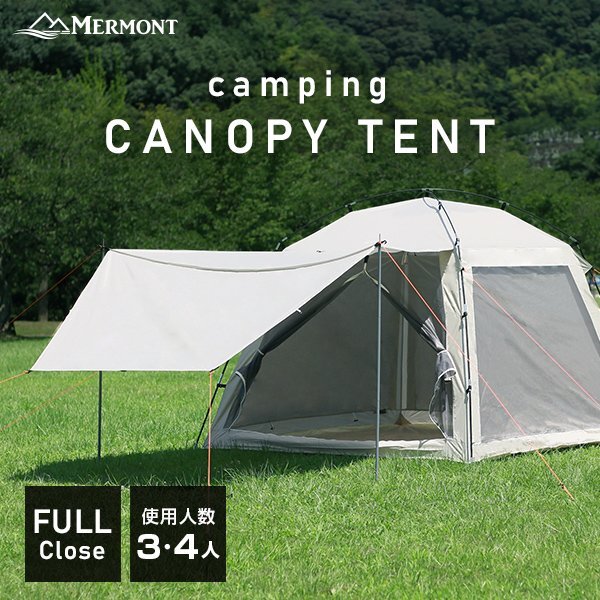 - キャノピードームテント ファミリー テント 3~4人 耐水 雨よけ 防虫 サンシェード UVカット 収納袋付き フルクローズ アウトドア レジャー
