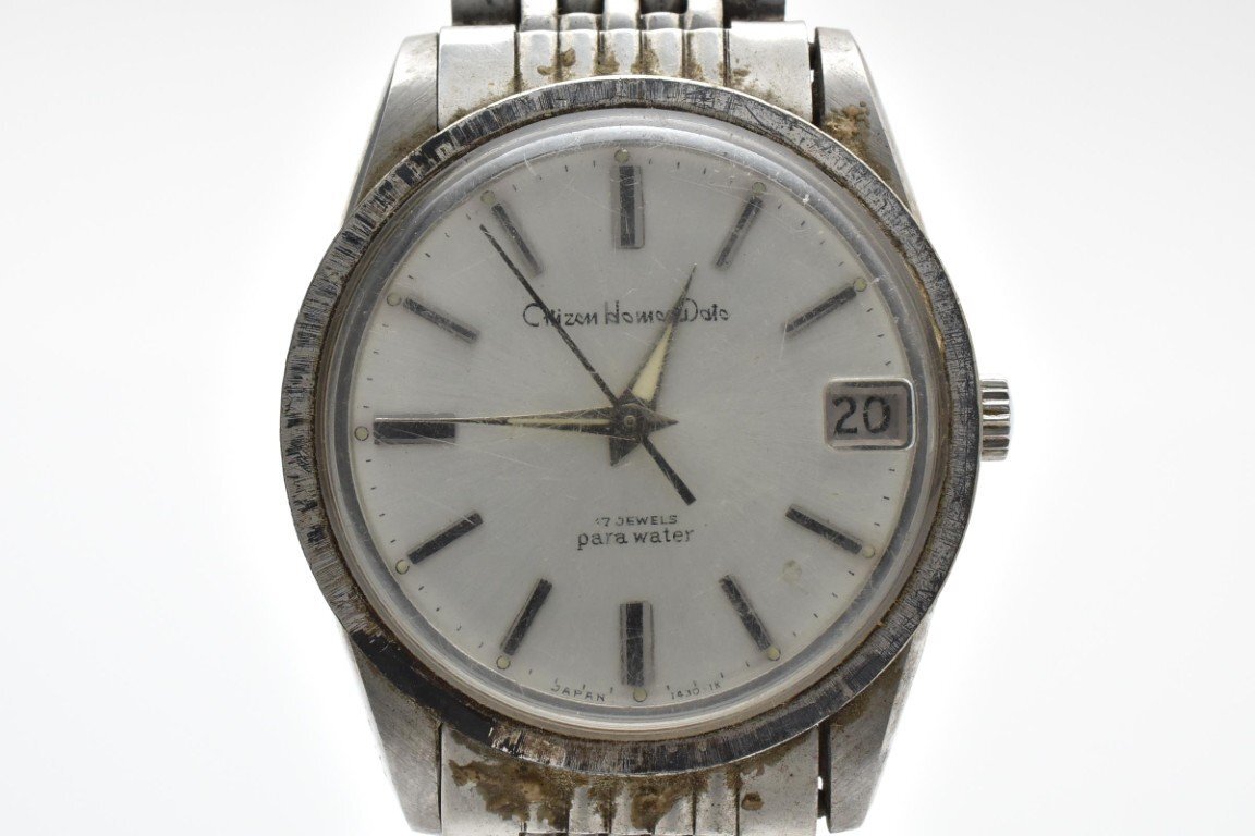 > 稼働品 CITIZEN Homer Date シチズン ホーマー デイト 手巻き ラウンド 腕時計 メンズ 3針 デイト シルバー