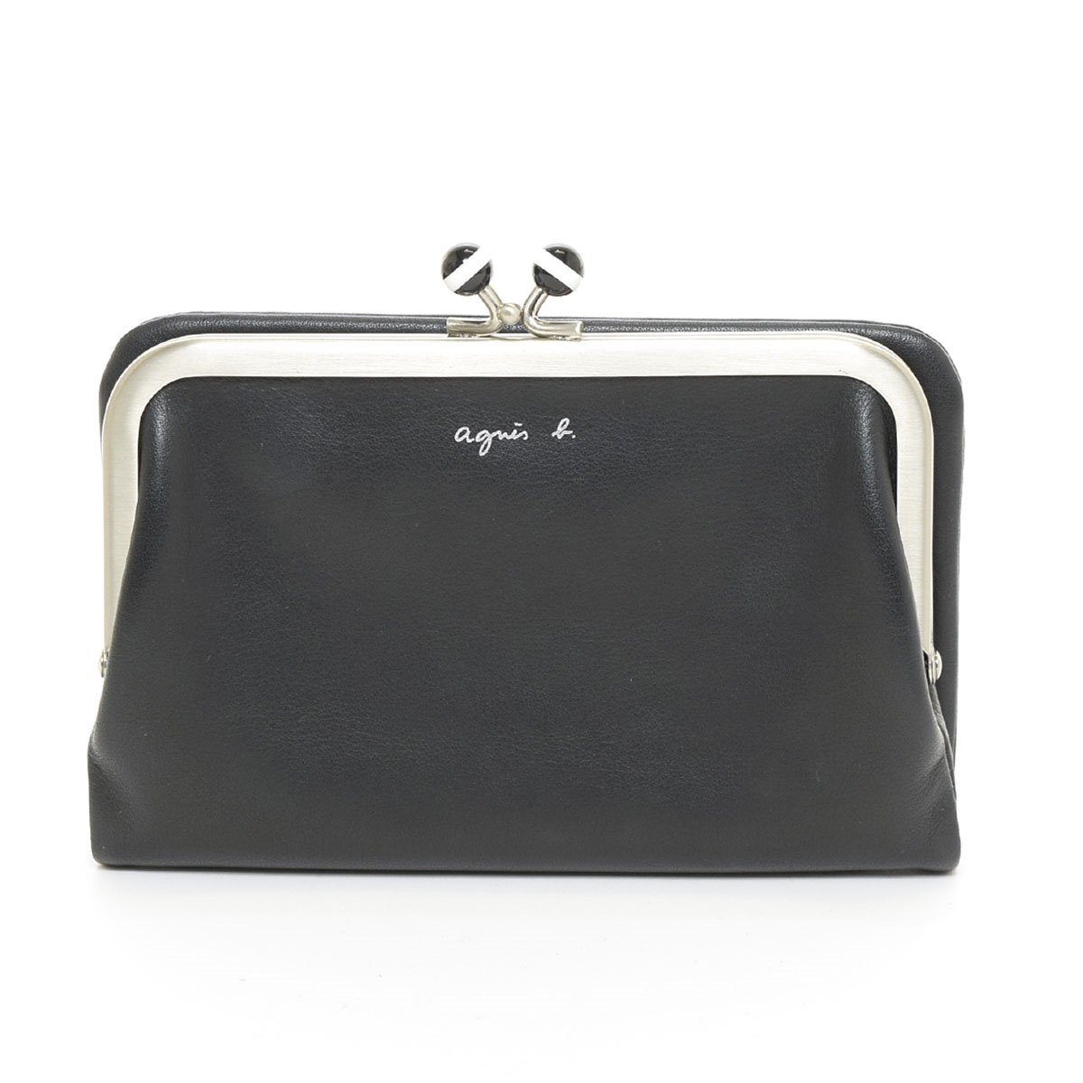 - ◇567448 agnes b. アニエスベー 二つ折り財布 レザーがま口財布 0297-VLJ2 レディース ブラック