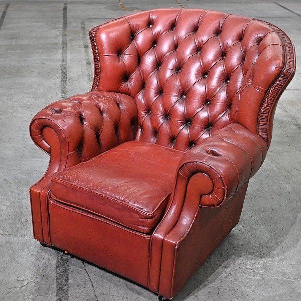 - チェスターフィールドチェア 本革 レザー 椅子 一人掛け シングル ラウンジ 英国ヴィンテージ ロールアーム リビング ダイニング 待合室