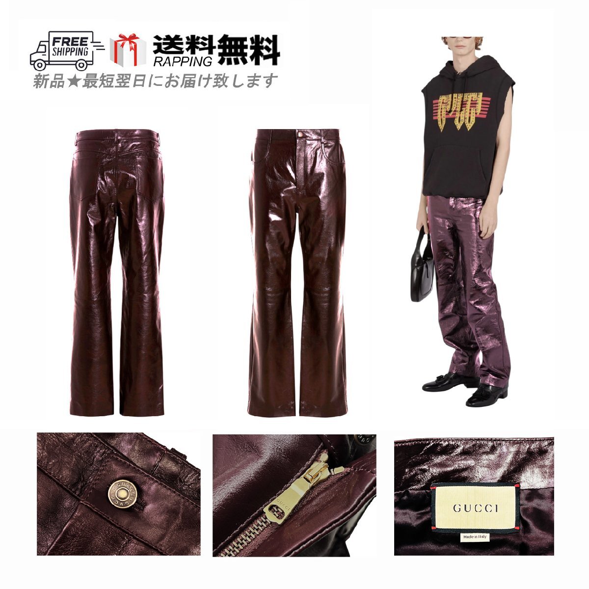 - L529-46.. GUCCI グッチ パンツ ボトムス ソフト ラムレザー 100% 光沢 メンズ イタリア製 ★ ボルドー