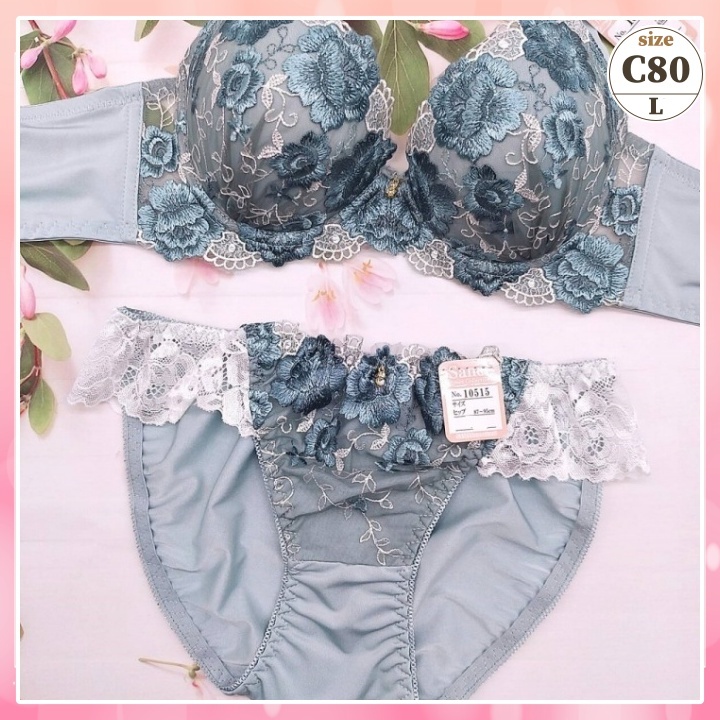 > Zc8012◆新品 ブラショーツセット【C80/L】下着 ランジェリー 脇高 谷間メイク 美胸 フローラル&レース 緑