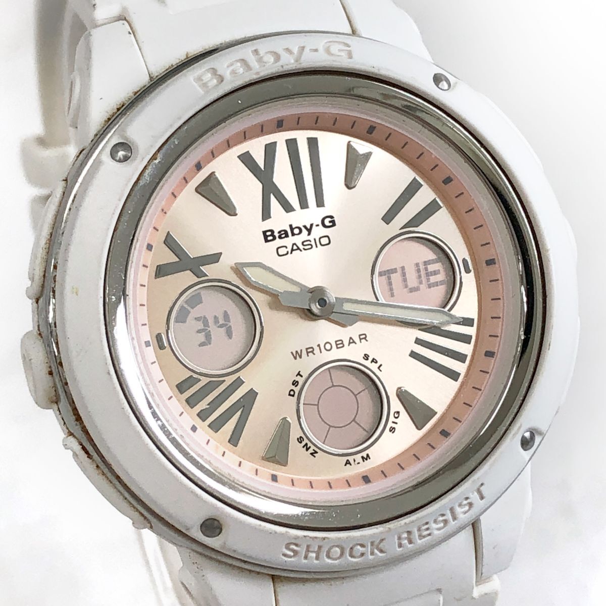 - 美品 CASIO カシオ BABY-G ベビーG べビージー 腕時計 BGA-152-7B2JF クオーツ アナデジ ホワイト ピンク ラウンド シンプル 動作確認済み