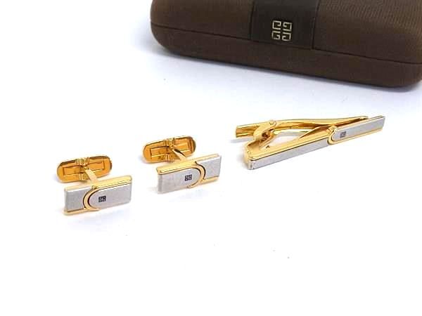 - ■美品■ GIVENCHY ジバンシィ ネクタイピン カフスボタン カフリンクス アクセサリー 2点セット シルバー系×ゴールド系 DI7949