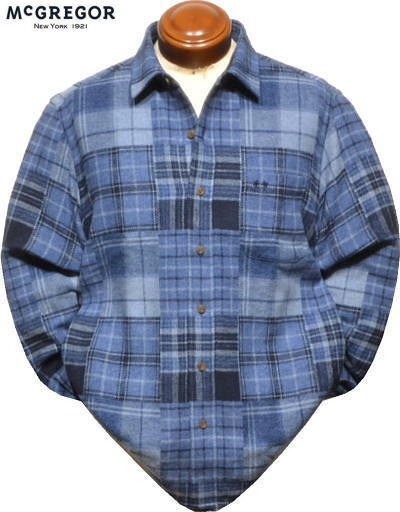 - 【ネイビー L】 マクレガー 長袖シャツ メンズ 111173617 手洗い可 ネルシャツ パッチワーク調チェック McGREGOR