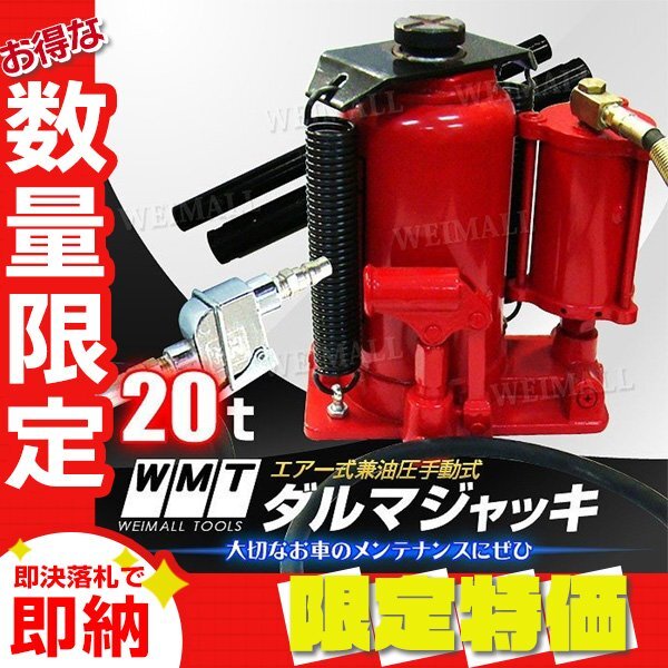 - 【限定セール】新品 油圧 ダルマジャッキ 耐荷重20t 手動兼用 エアー式 ジャッキ ボトルジャッキ タイヤ ホイール オイル 交換 整備