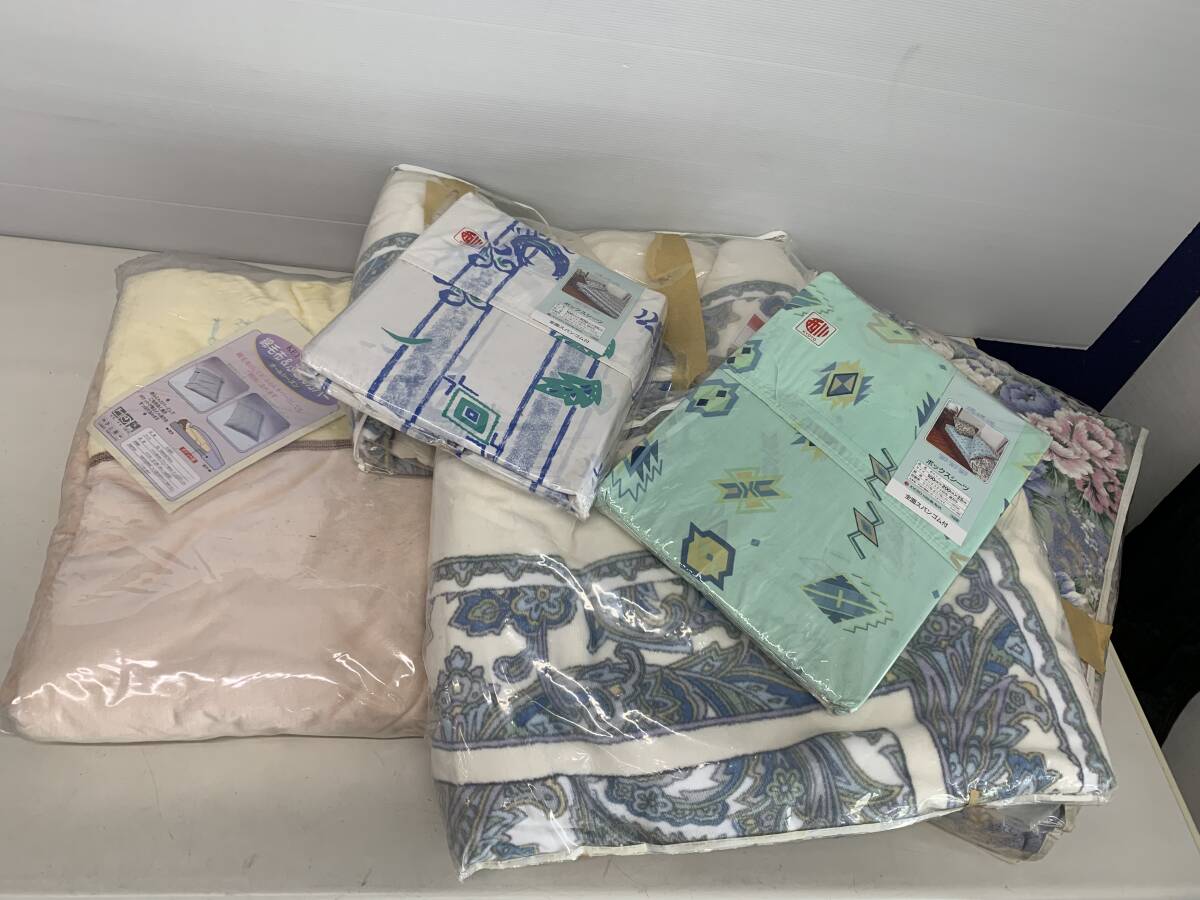 K 未使用 羽毛肌布団 綿毛布 ボックスシーツ 等 6点 まとめて 布団 毛布 シーツ 訳あり拍卖