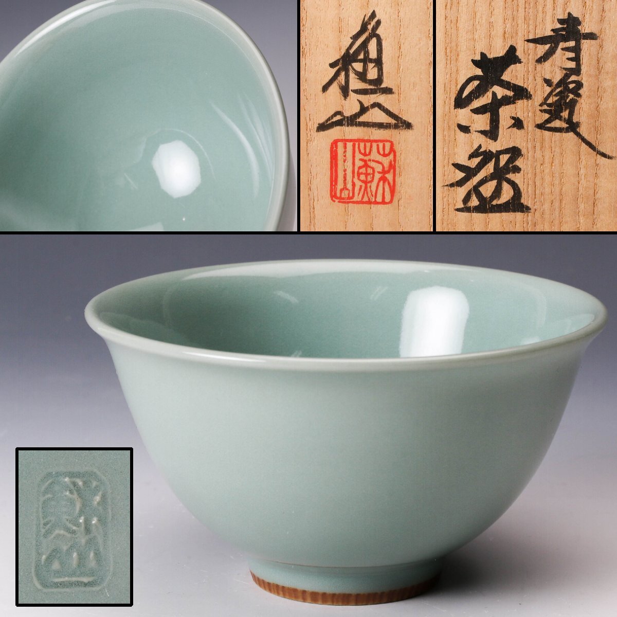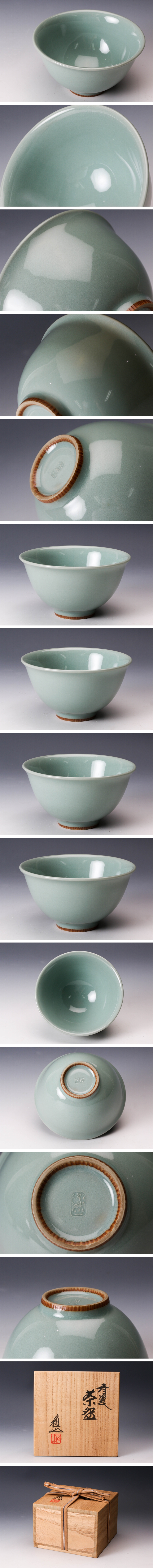 【佳香】三代 諏訪蘇山 青瓷 茶碗 共箱 茶道具 本物保証