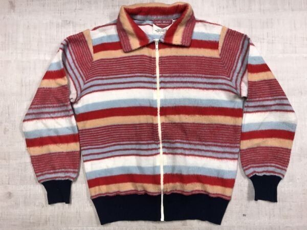 > MAGIC ISLAND マジックアイランド OLD 香港製 90s スポーツ 古着 マルチカラーボーダー ジップアップ ニット ブルゾン ジャケット メンズ M