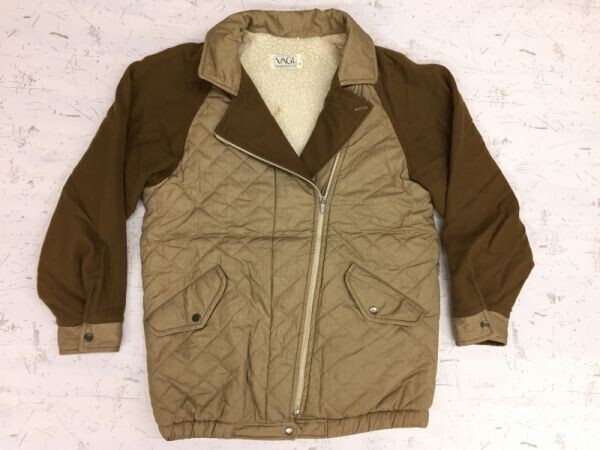 > VAGI ヴァギ レトロ ミリタリー 防寒 前立ダブルライダース風 異素材切替 キルティングジャケット コート レディース 9 茶~ベージュ