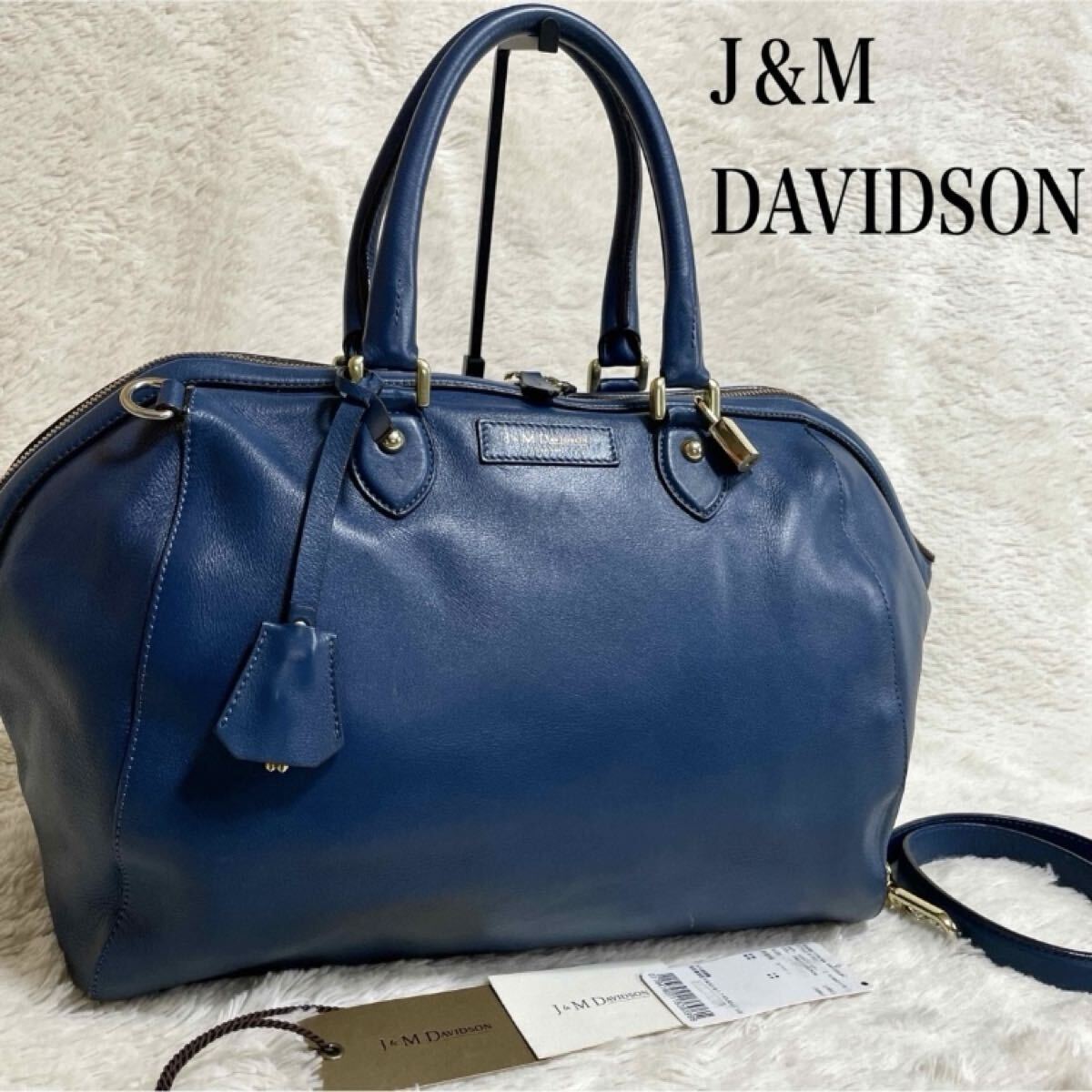> J&M DAVIDSON 2way トートバッグ ショルダーバッグ レザー 青 ジェイアンドエム ダビッドソン オールレザー 本革 大容量