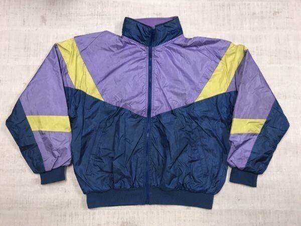 - サマス samas 配色切替 フード内蔵 オールド レトロ スポーツ 古着 ジップアップ ブルゾン トラック ジャケット メンズ M 紺/紫