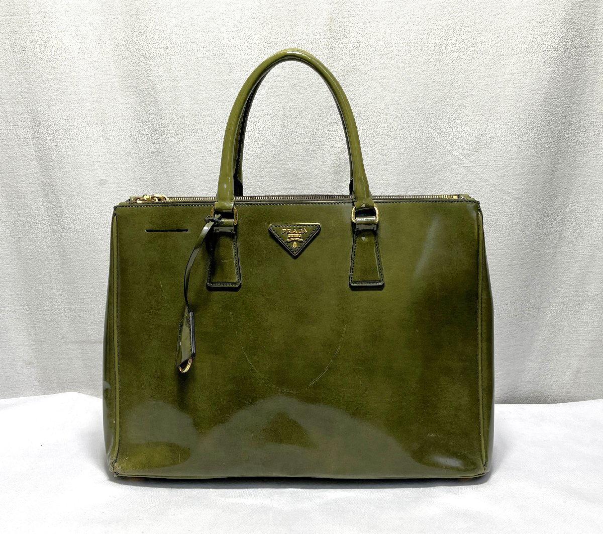 - ▽PRADA プラダ ハンドバッグ ガレリア エナメルグリーン 中古・現状品▽012963