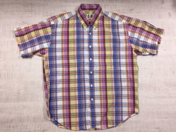 > LA TIMES オールド レトロ アメカジ 古着 マドラスチェック 胸ポケット 半袖ボタンダウンシャツ メンズ M マルチカラー