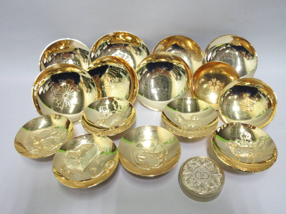 - アンティーク祭 メッキ製品 おまとめ 約1400g 金杯 杯 朱肉ケース 24KGP 埼玉県警 EXPO70 万博 菊紋 縁起物 ゴールド 干支