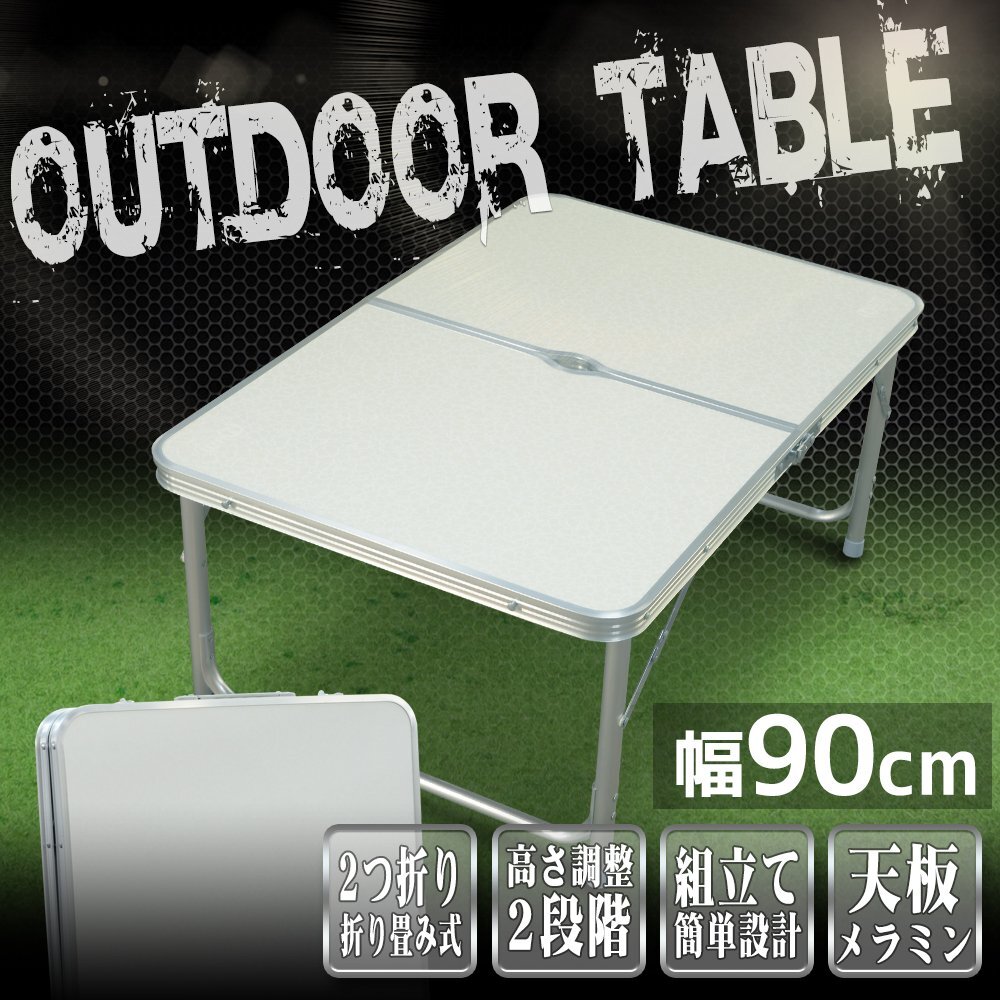 - [幅 90cm] 白 ホワイト レジャーテーブル 折りたたみ アウトドア ピクニック[アルミテーブル キャンプ バーベキュー BBQ]
