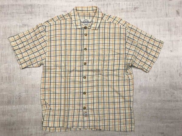 - フランス製 A course des Garcons ユーロ レトロ オールド トラッド オーバーチェック 胸ポケット 半袖シャツ メンズ M オレンジ系